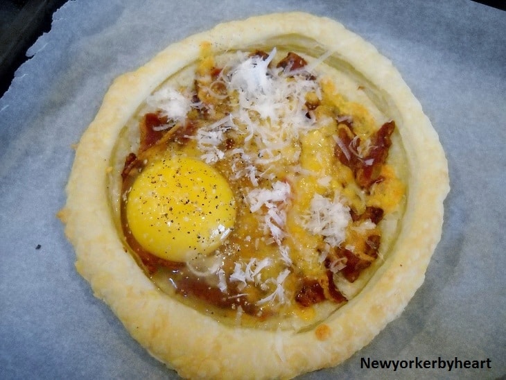 Sådan laver du bagte æg i butterdej med bacon og ost. En dejlig og nem opskrift på lækker morgenmad med bagt butterdej, æg, ost og bacon.